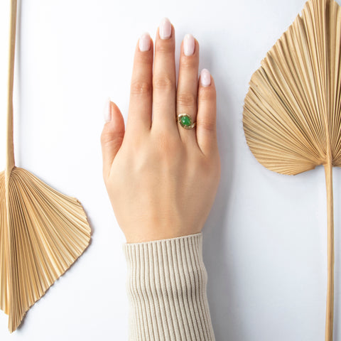Vintage 10k Yellow Gold 1.7ct Jade Textured Nestled Basket Ring 7.00