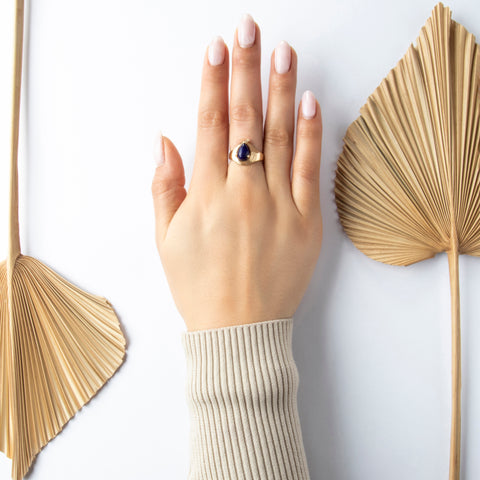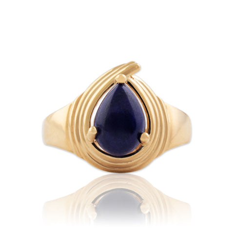Vintage 14k Yellow Gold 1.6ct Lapis Lazuli Sleek Spiraling Teardrop Ring 8.00