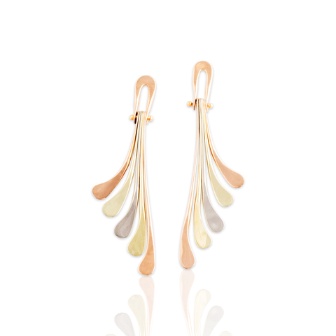 Vintage 14k Tricolor Gold Wonderful Hinged Fringe Dangle Earrings