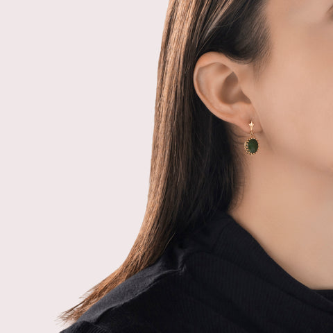 Vintage 14k Yellow Gold 3cttw Jade Pretty Speckled Cabochon Dangle Earrings