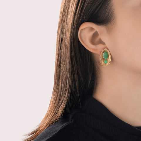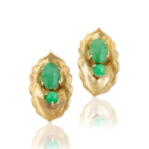 Vintage 14k Yellow Gold 4cttw Jade Textured Naturalistic Leaf Statement Earrings