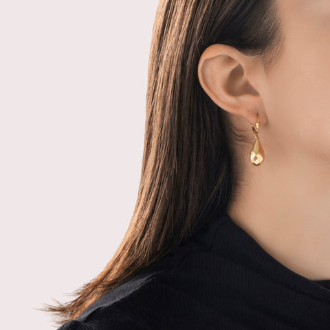 Estate Italian 18k Yellow Gold Elegant Faceted Teardrop Dangle Earrings