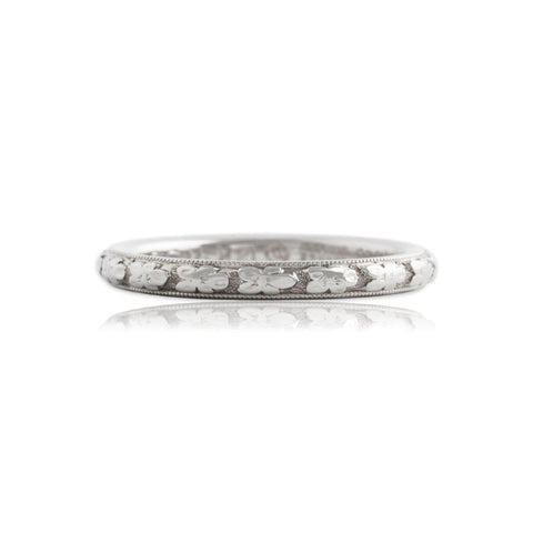 Antique Art Deco Traub 18k White Gold Gleaming Blossom Band Ring 5.00