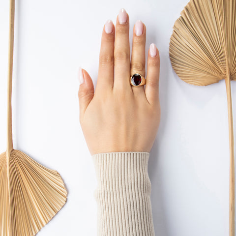 Vintage Heavy 10k Yellow Gold 8.7ct Synthetic Ruby Crimson Signet Ring 7.00