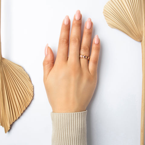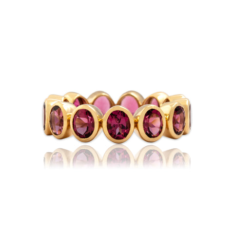 Estate 18k Yellow Gold 4.45cttw Pink Tourmaline Bubble Eternity Band Ring 7.00