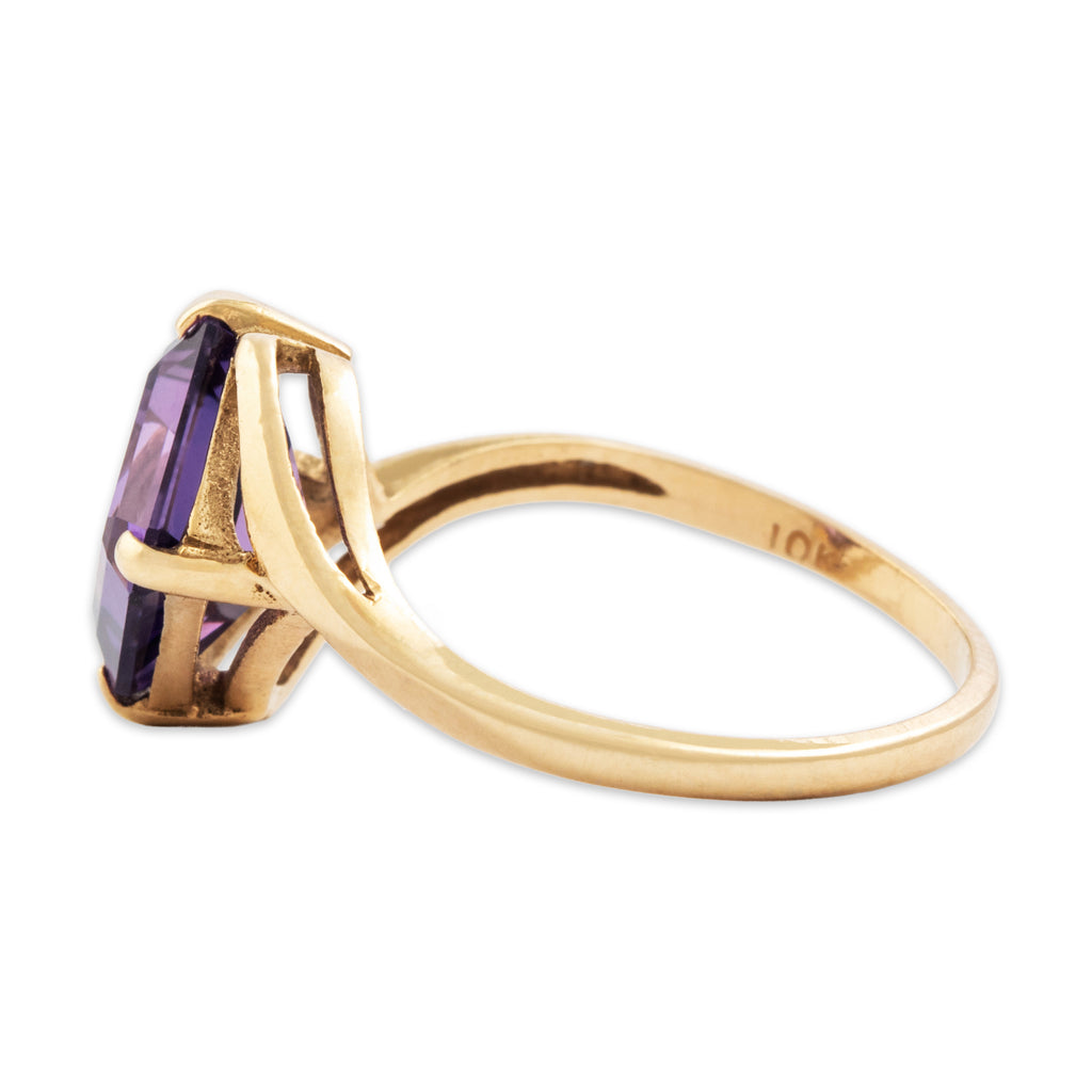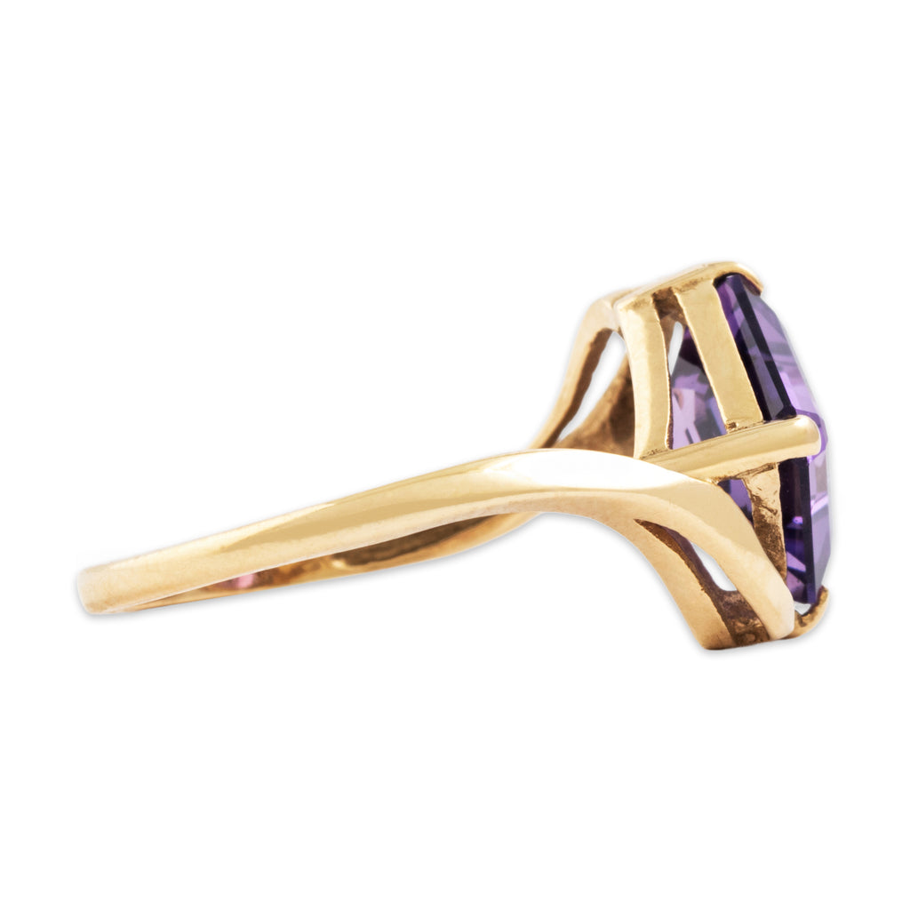 Vintage 10k Yellow Gold 2.8ct Purple Synthetic Sapphire Square Bypass Ring 5.50