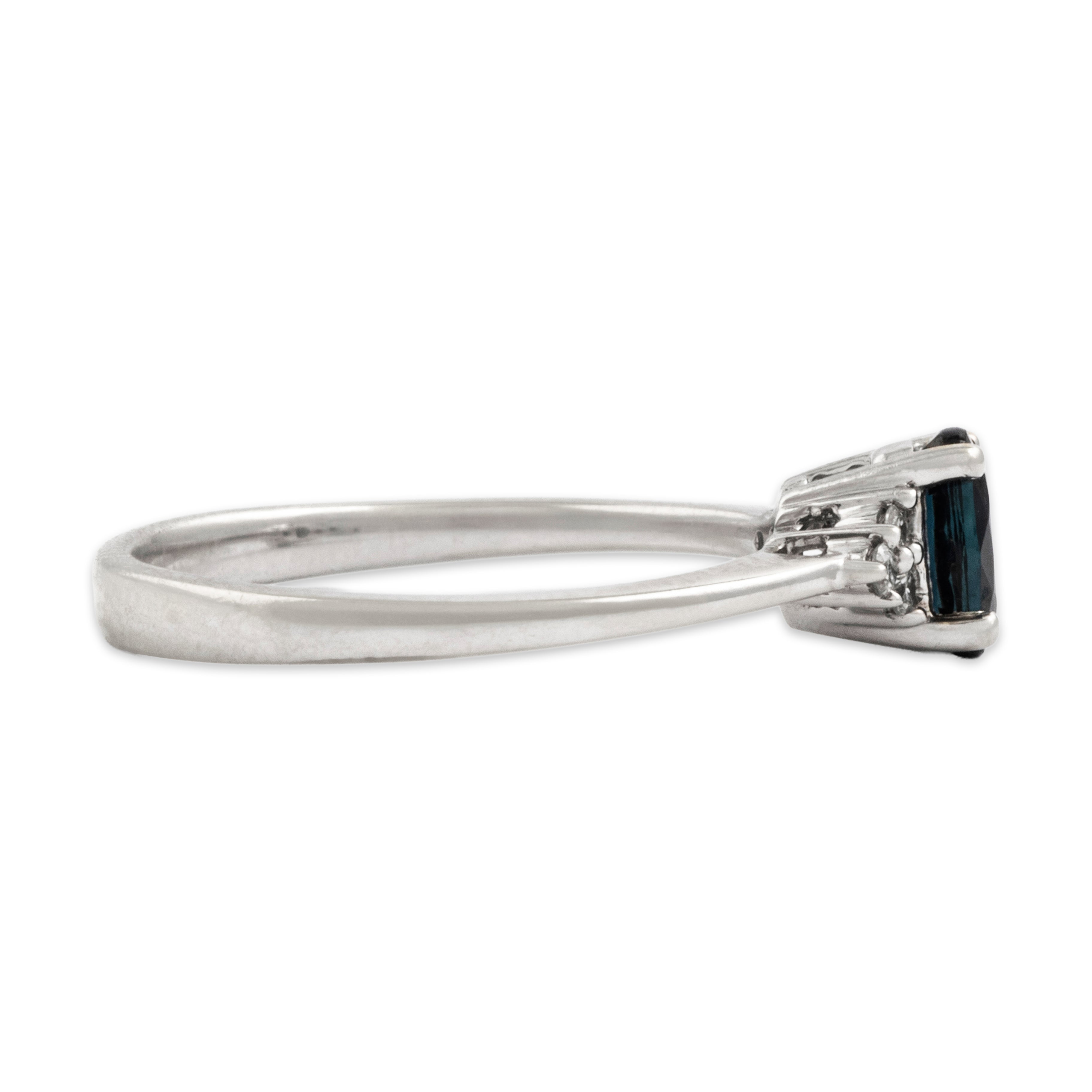 Condition: Very good condition, not eye-visible, seen under 10x magnification: minor nicks to edge of sapphire, minor nick to one diamond
