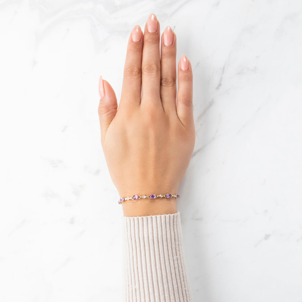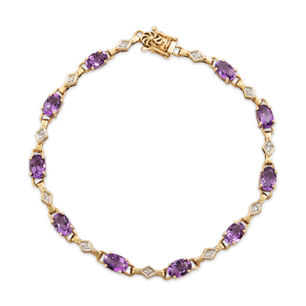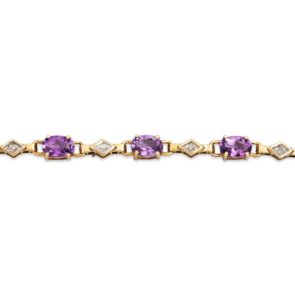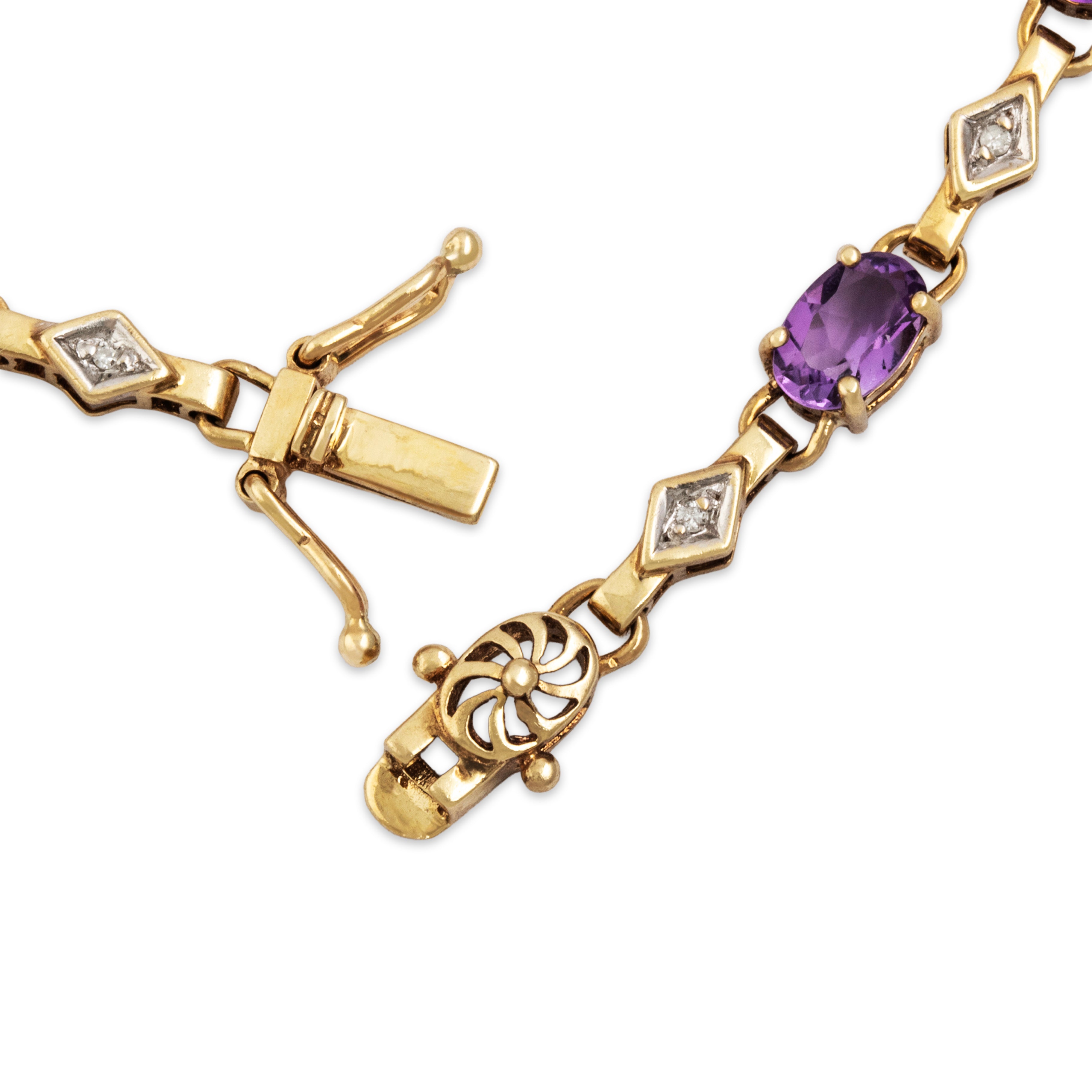 Condition: Very good condition, not eye-visible, seen under 10x magnification: nicks to two diamonds, minor surface wear to amethysts