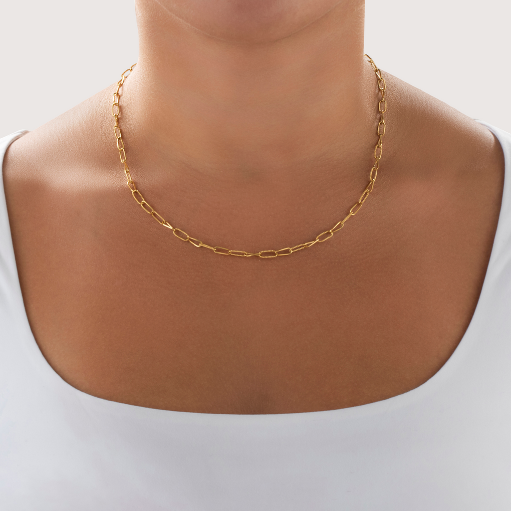 Discover this 18k yellow gold necklace crafted by a vintage maker in a wonderful cable paperclip chain design.