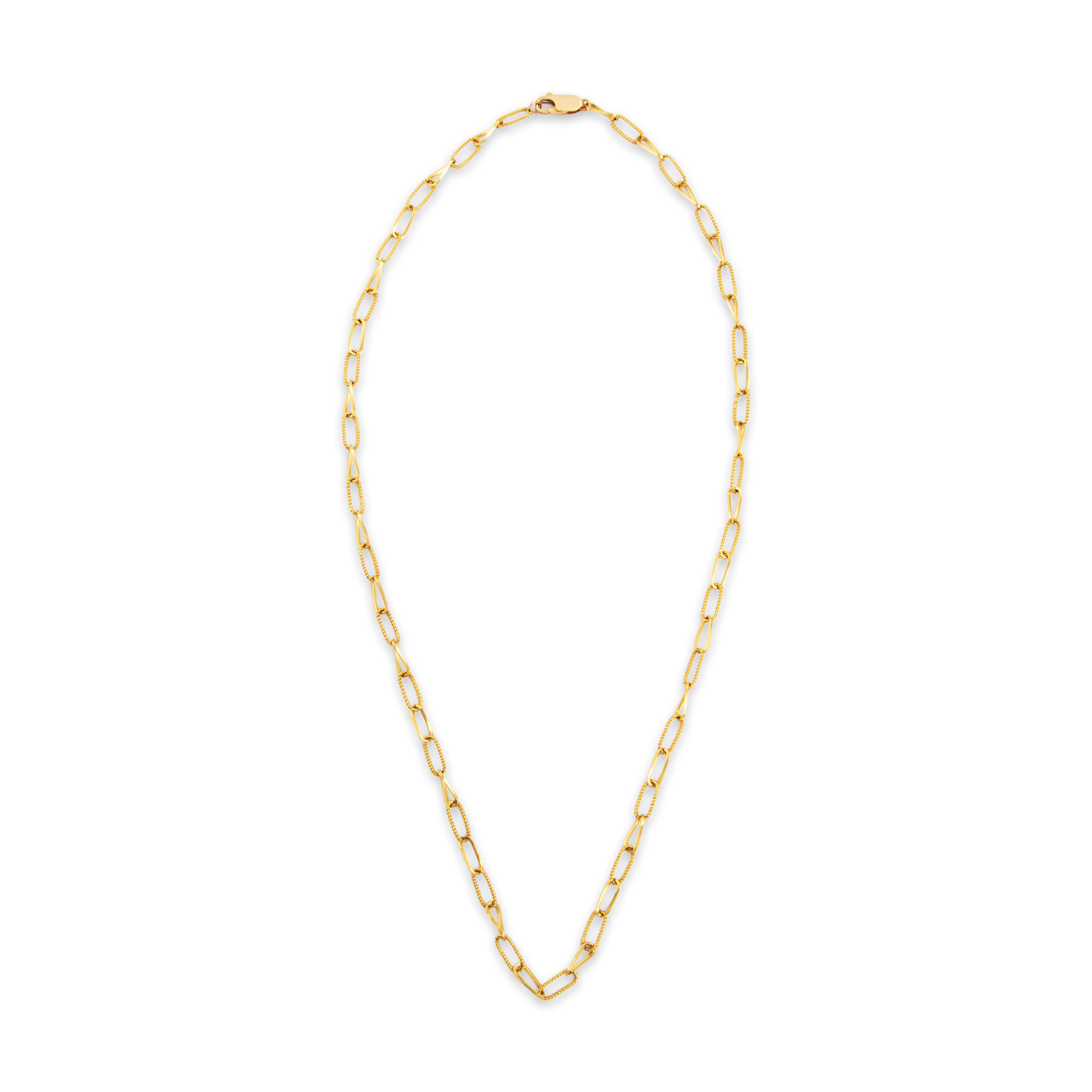Vintage 18k Yellow Gold Chic Twisting Cable Paperclip Chain Necklace 18.5"