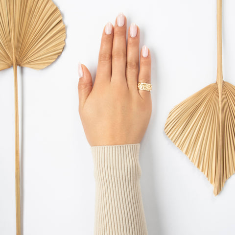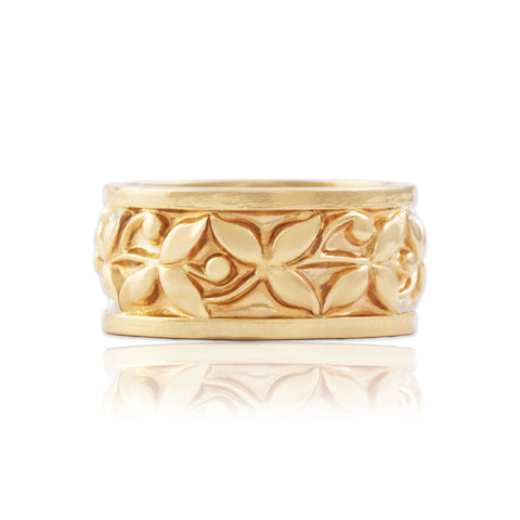 Vintage Heavy 14k Yellow Gold Gleaming Swirling Leaf Wide Band Ring 6.25