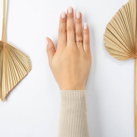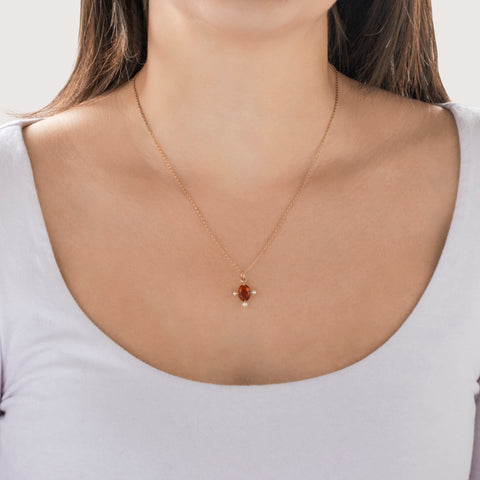 Antique 14k Yellow Gold Pink Glass Satin Flourish Charm / Pendant - On model view