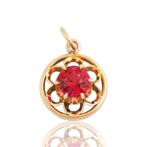 Antique 14k Rosy Yellow Gold 1ct Synthetic Ruby Bright Buttercup Charm / Pendant