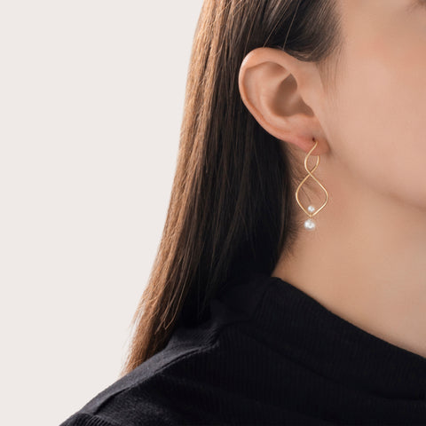 Vintage Large 14k Yellow Gold Pearl Spinning Twist Drop Earrings