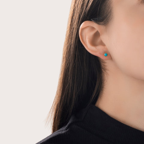 Vintage Small 14k Yellow Gold Robin's Egg Turquoise Cabochon Stud Earrings