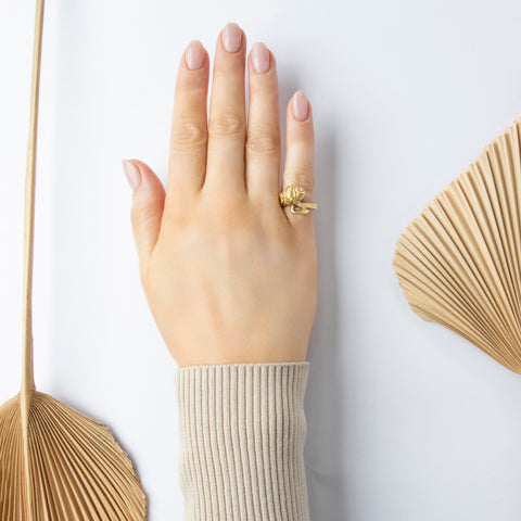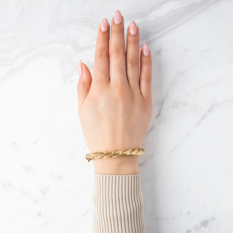 Vintage 14k Yellow Gold Diamond Dazzling Wave Hoop Earrings - On model view