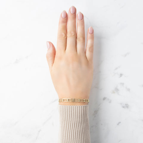 Every piece undergoes an intensive review based on GIA standards. We verify all gold and platinum materials through acid and advanced testing, examine gemstones with microscopes, refractometers, chelsea filters, and UV light, and evaluate construction, hallmarks, and craftsmanship to confirm authenticity.