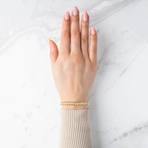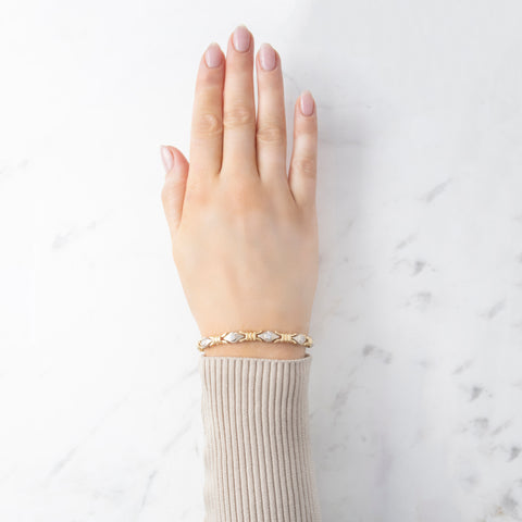Vintage 14k Yellow Gold Sapphire Ruby Emerald Diamond Bangle - On model view