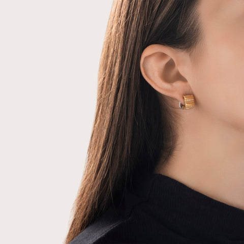 Vintage Italian Large 18k Yellow Gold Coral Textured Triangle Dangle Earrings