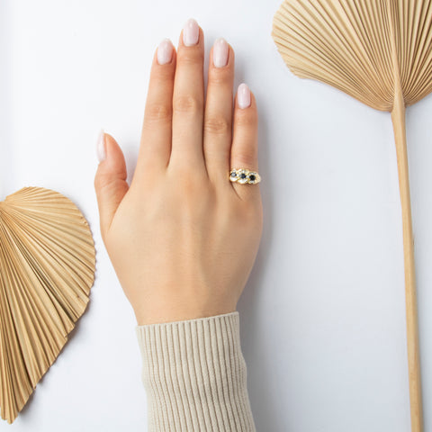 Vintage 14k Yellow Gold 1.1cttw Blue Sapphire Diamond Flourish Stud Earrings