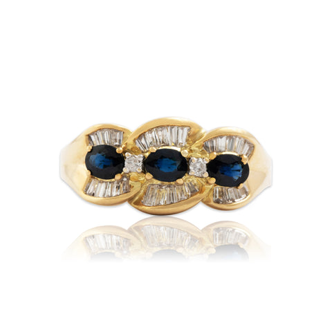 Vintage 14k Yellow Gold Sapphire Diamond Openwork Statement Stud Earrings